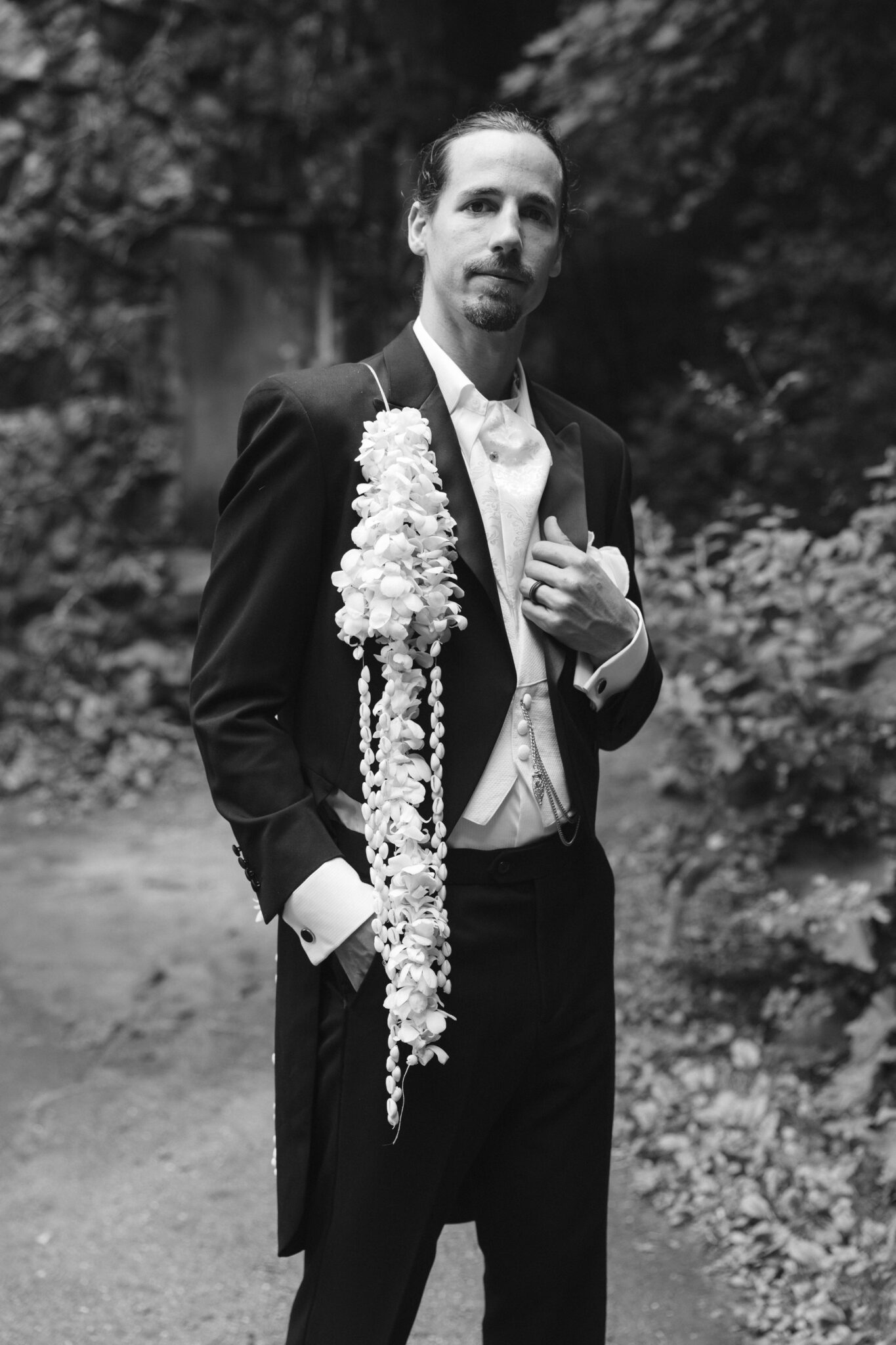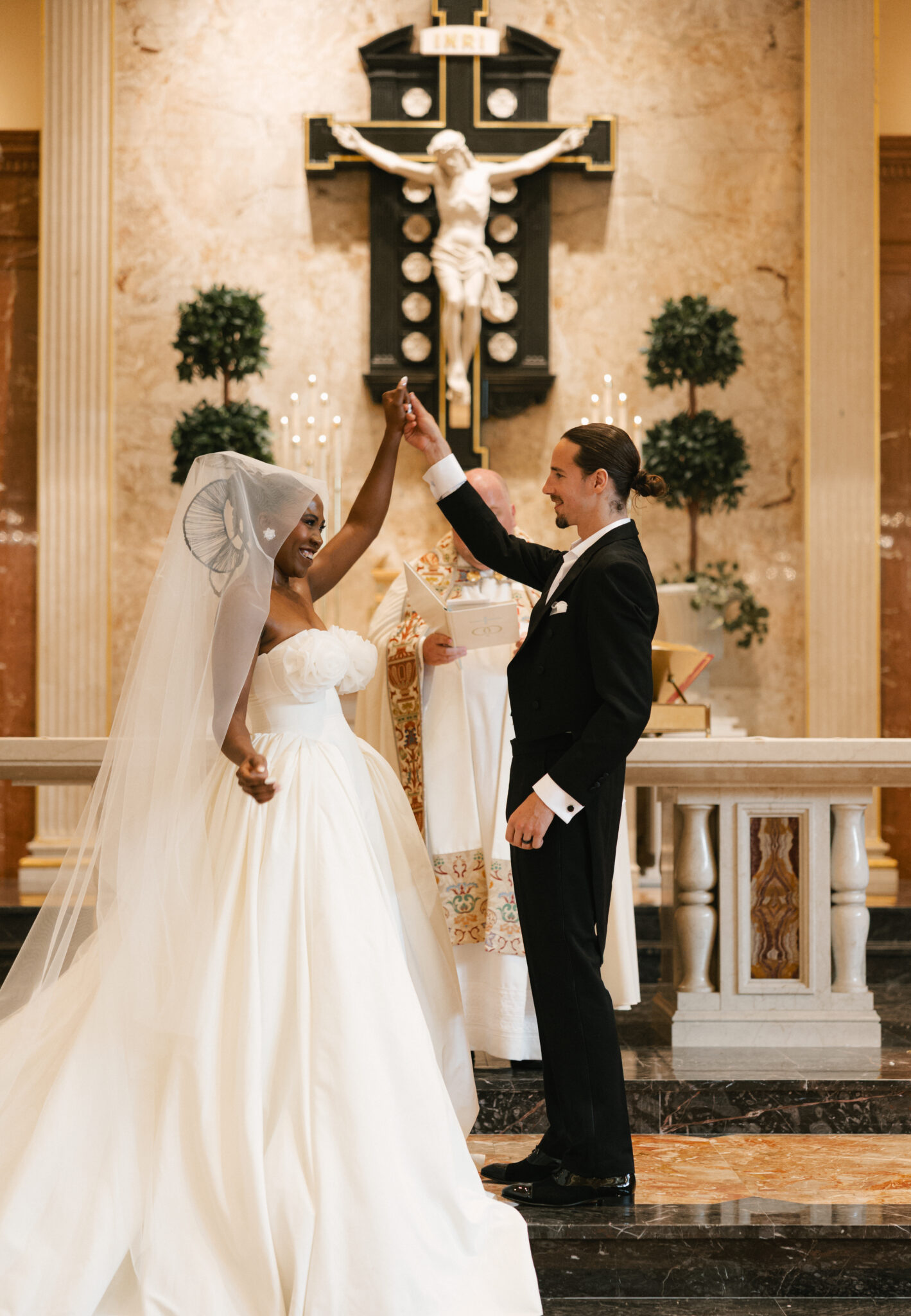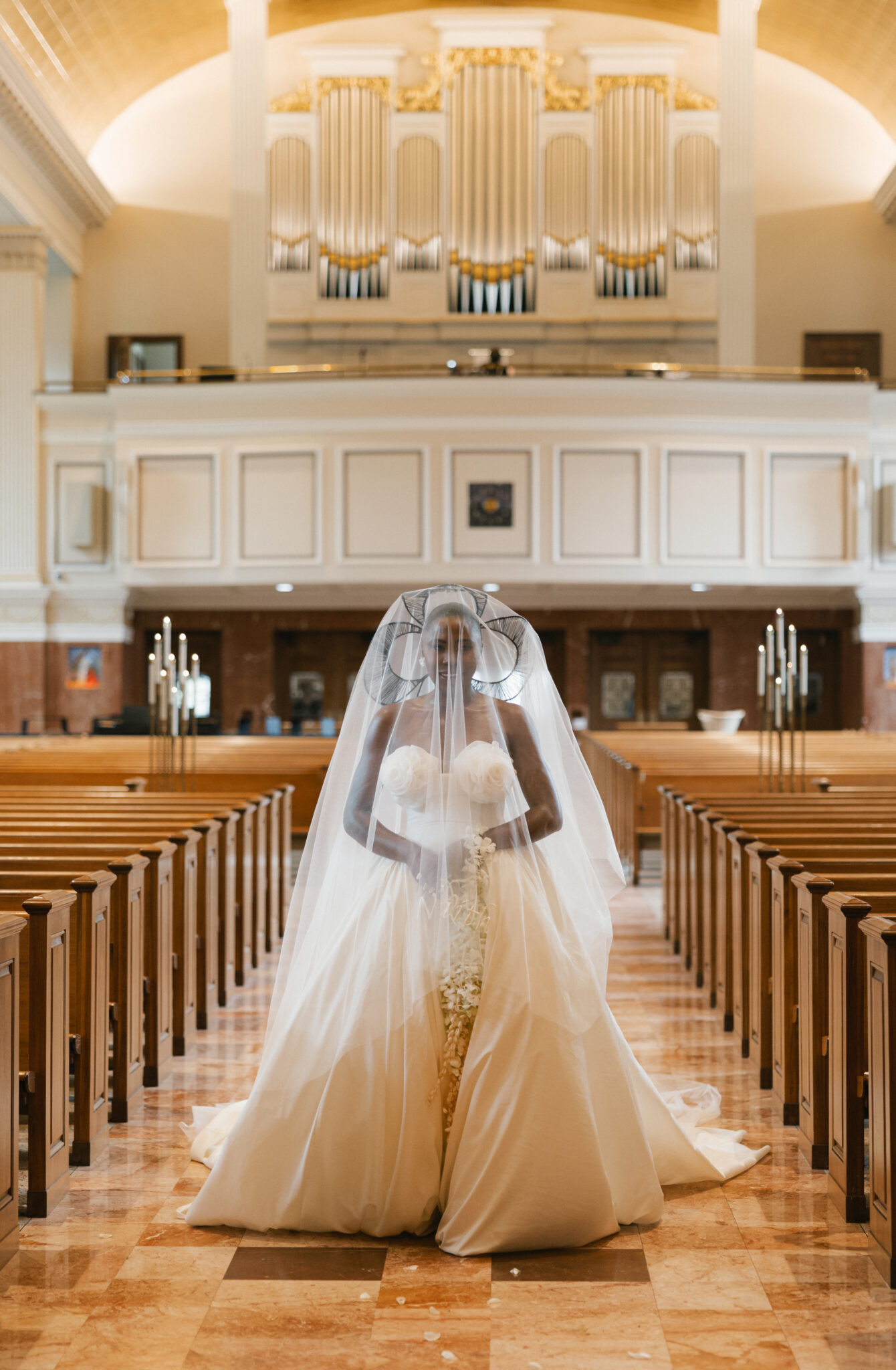 An intimate ceremony was held at St. Joseph Catholic Church for family and close friends. We kept the design understated to draw focus to the bride’s custom Zurik Bridal gown. With intricate floral detailing along the bodice, an architectural hairpiece, and Prada heels, Fanny’s walk down the aisle was striking in its quiet elegance. She carried a cascading bouquet of white Dendrobium orchids, handmade by her and her family—each petal individually hand-threaded to symbolize beauty, strength, love, and affection. The simplicity allowed the fashion and emotion of the moment to speak for themselves.