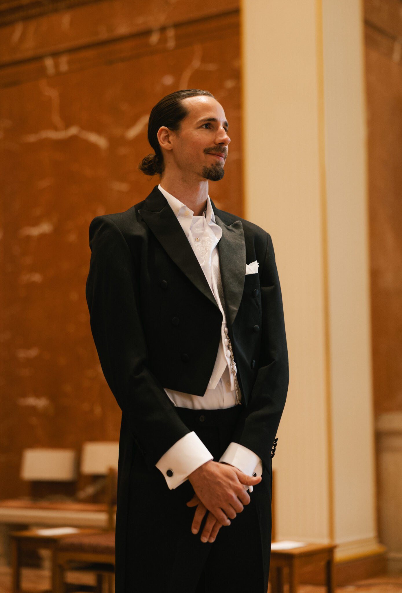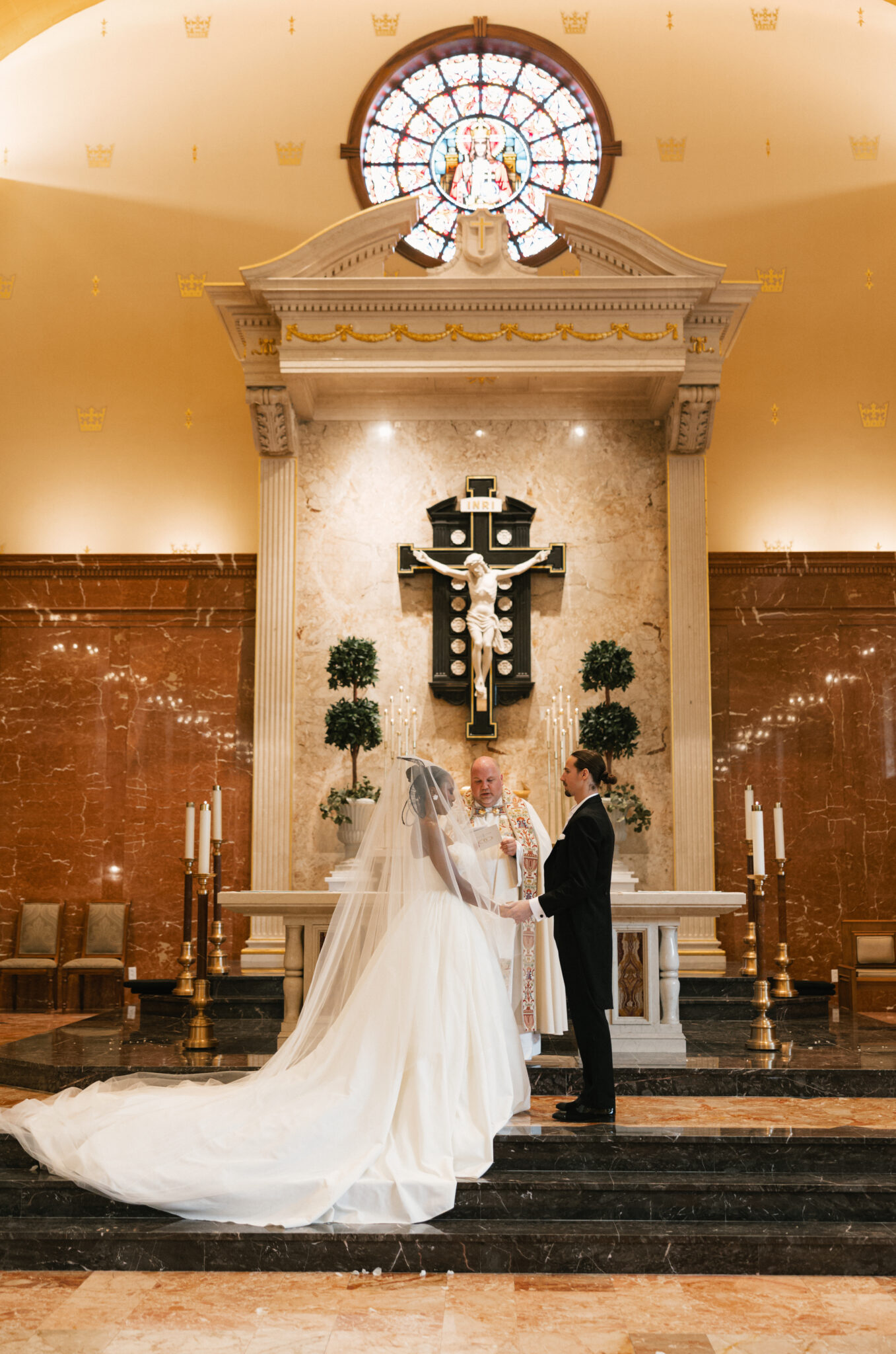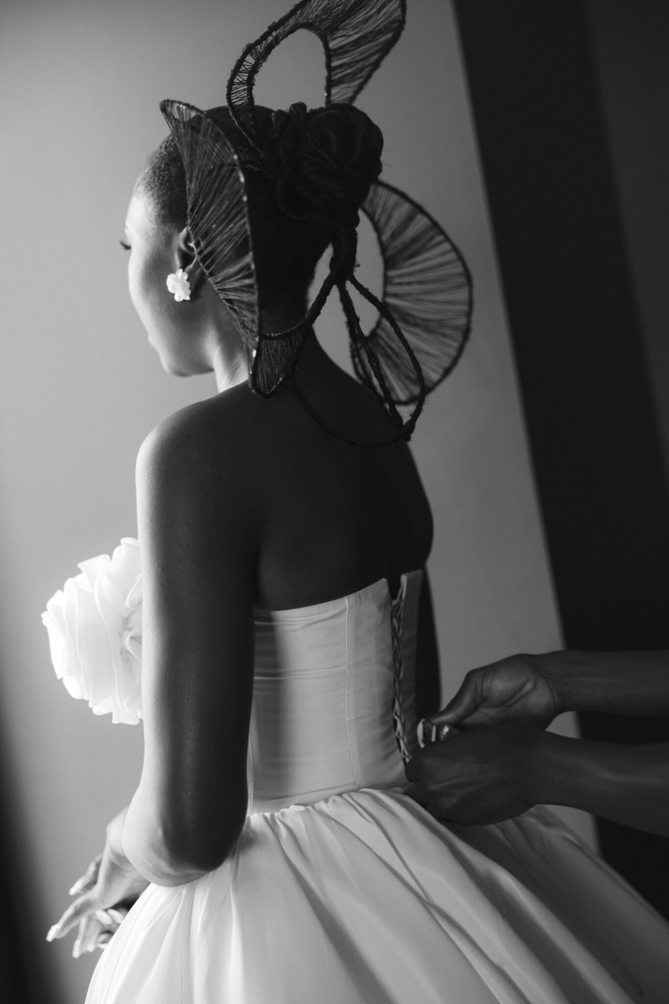 An intimate ceremony was held at St. Joseph Catholic Church for family and close friends. We kept the design understated to draw focus to the bride’s custom Zurik Bridal gown. With intricate floral detailing along the bodice, an architectural hairpiece, and Prada heels, Fanny’s walk down the aisle was striking in its quiet elegance. She carried a cascading bouquet of white Dendrobium orchids, handmade by her and her family—each petal individually hand-threaded to symbolize beauty, strength, love, and affection. The simplicity allowed the fashion and emotion of the moment to speak for themselves.